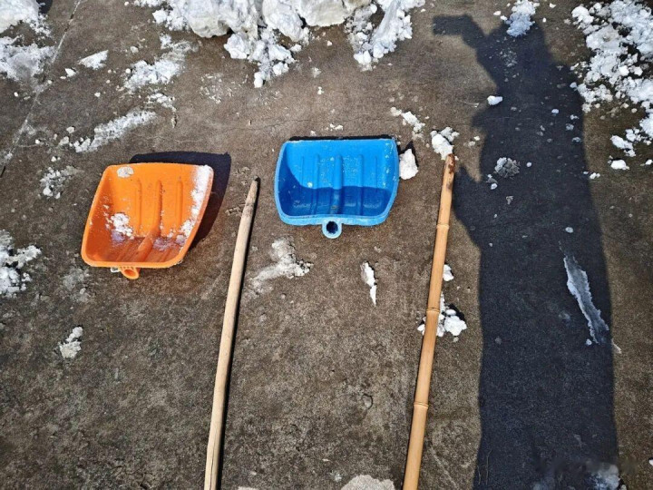 14.想献殷勤帮忙铲雪来着,结果连续干坏了两个铲子,妈妈说你还是别干活了。